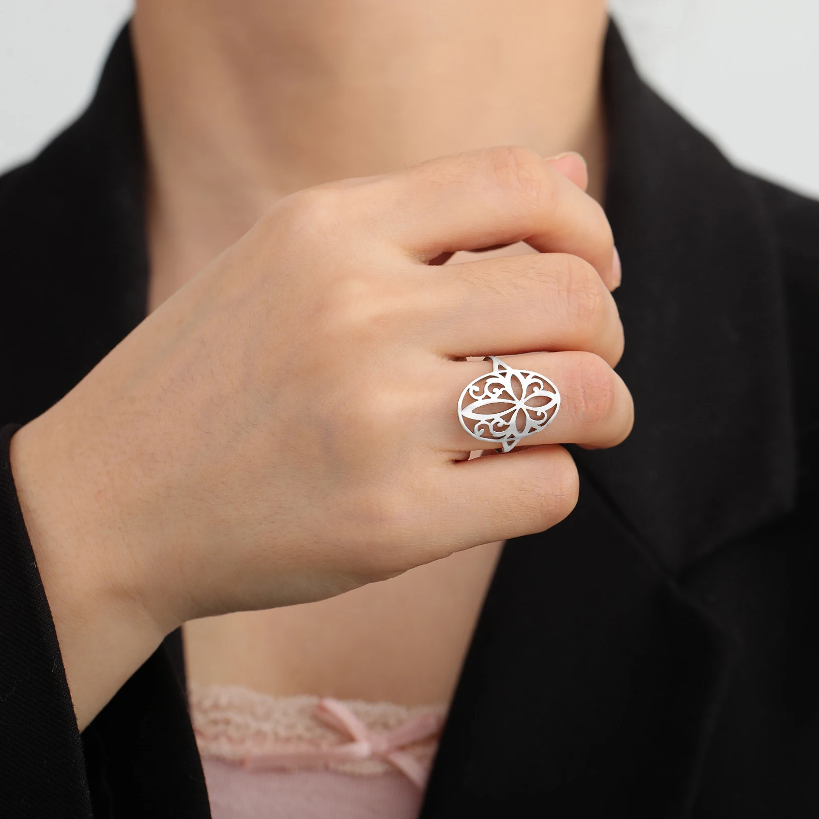 Amaxer Stainless Steel Witch Knot Celtic Knot Pentacle Rings for Women Witchcraft Protection Jewelry Christmas Vintage Gifts