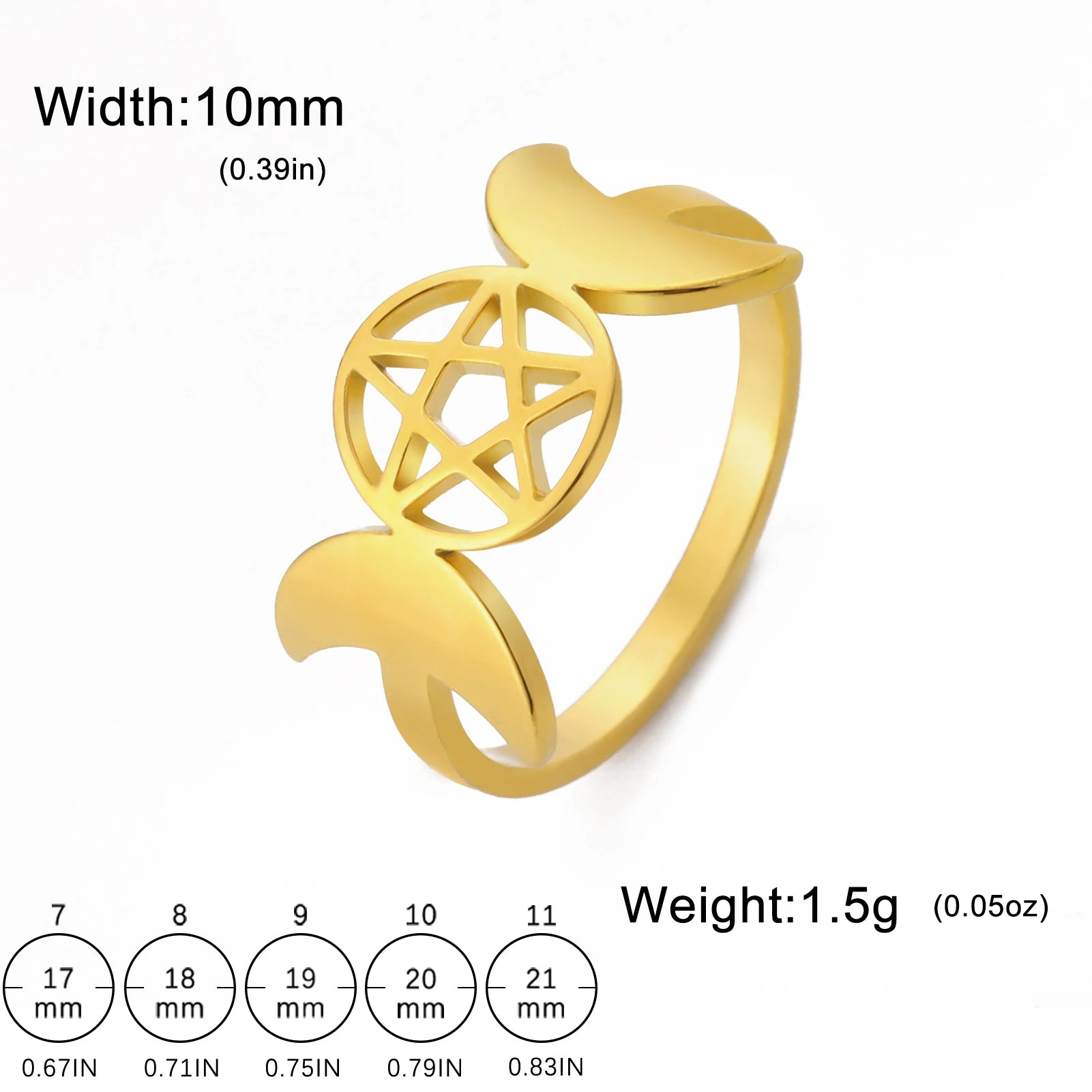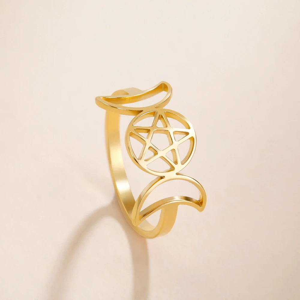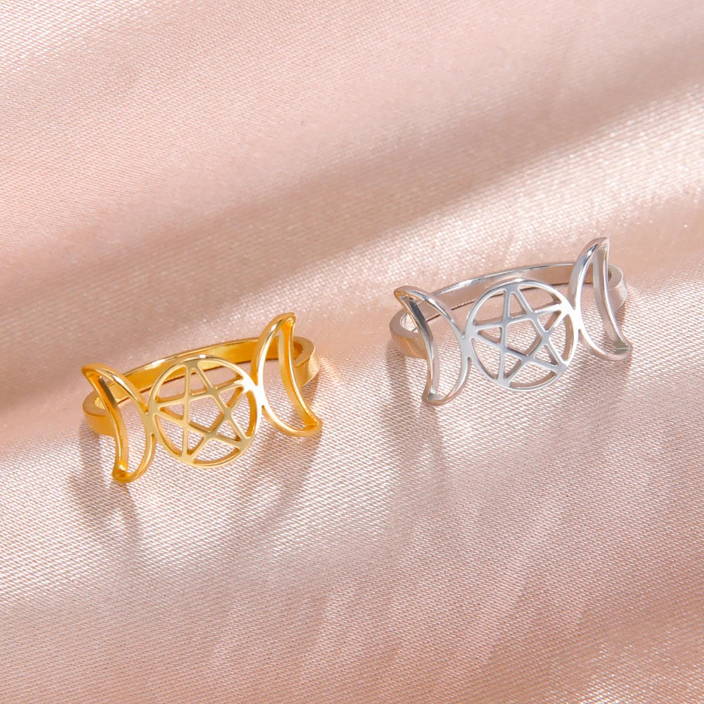 COOLTIME Pentagram Triple Moon Goddess Symbol Rings for Women Men Stainless Steel Crescent Star Ring Vintage Wicca Jewelry Gift