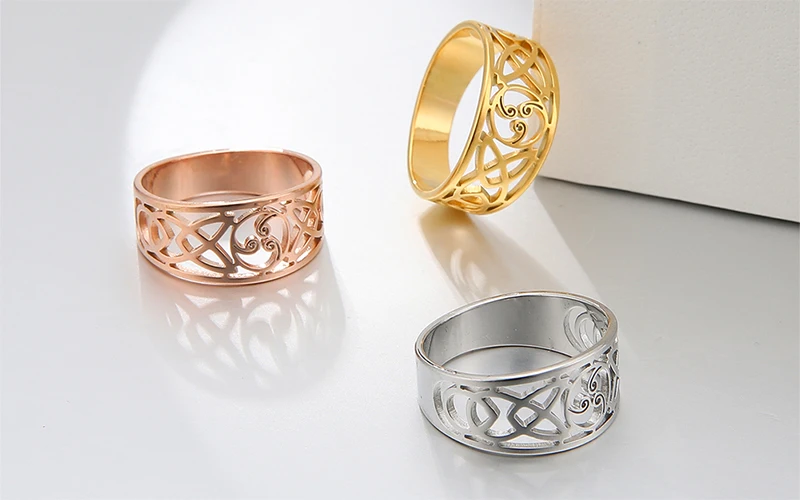 COOLTIME Witch Knot Triskele Triple Spiral Symbol Ring Stainless Steel Triskelion Amulet Ring for Women Men Vintage Jewelry Gift