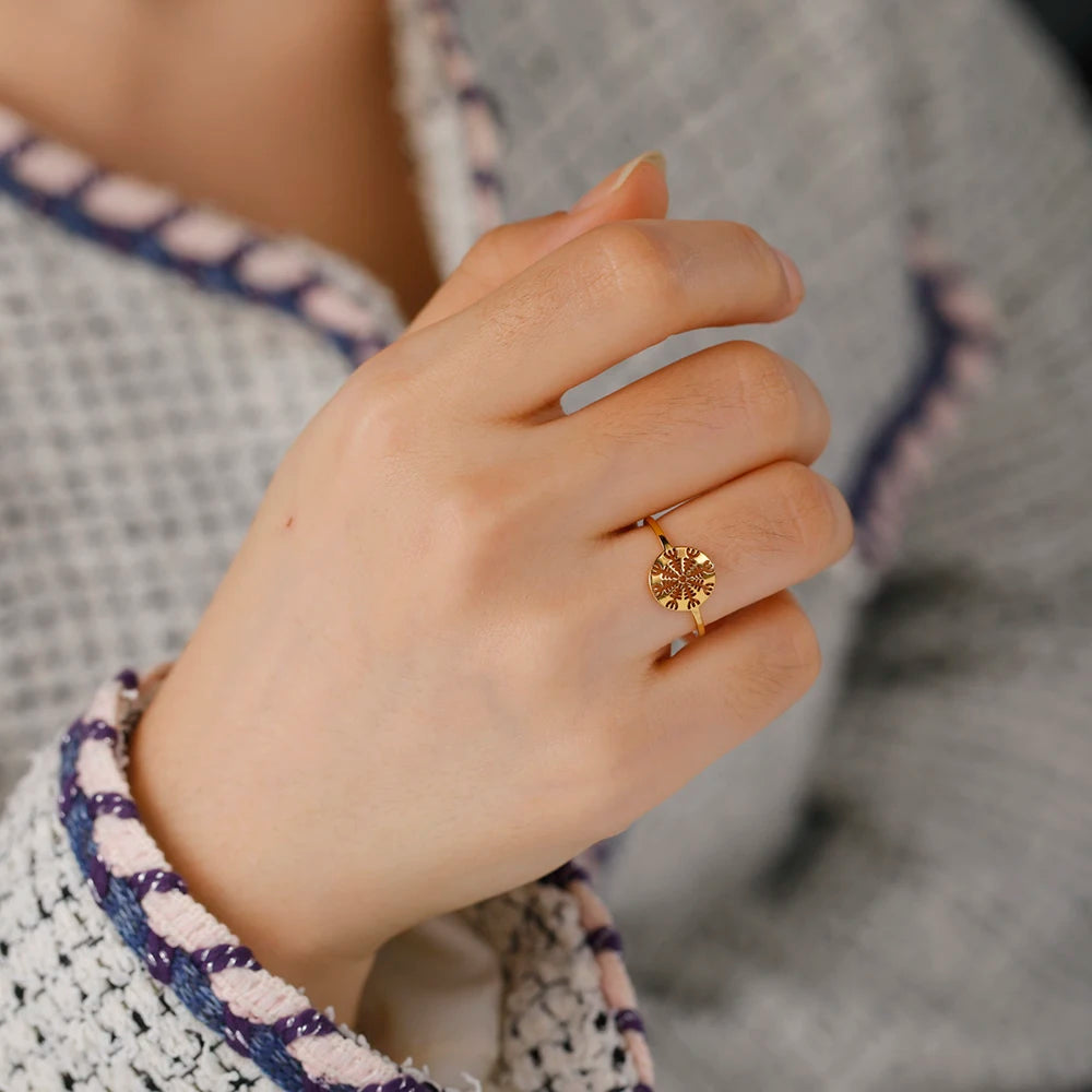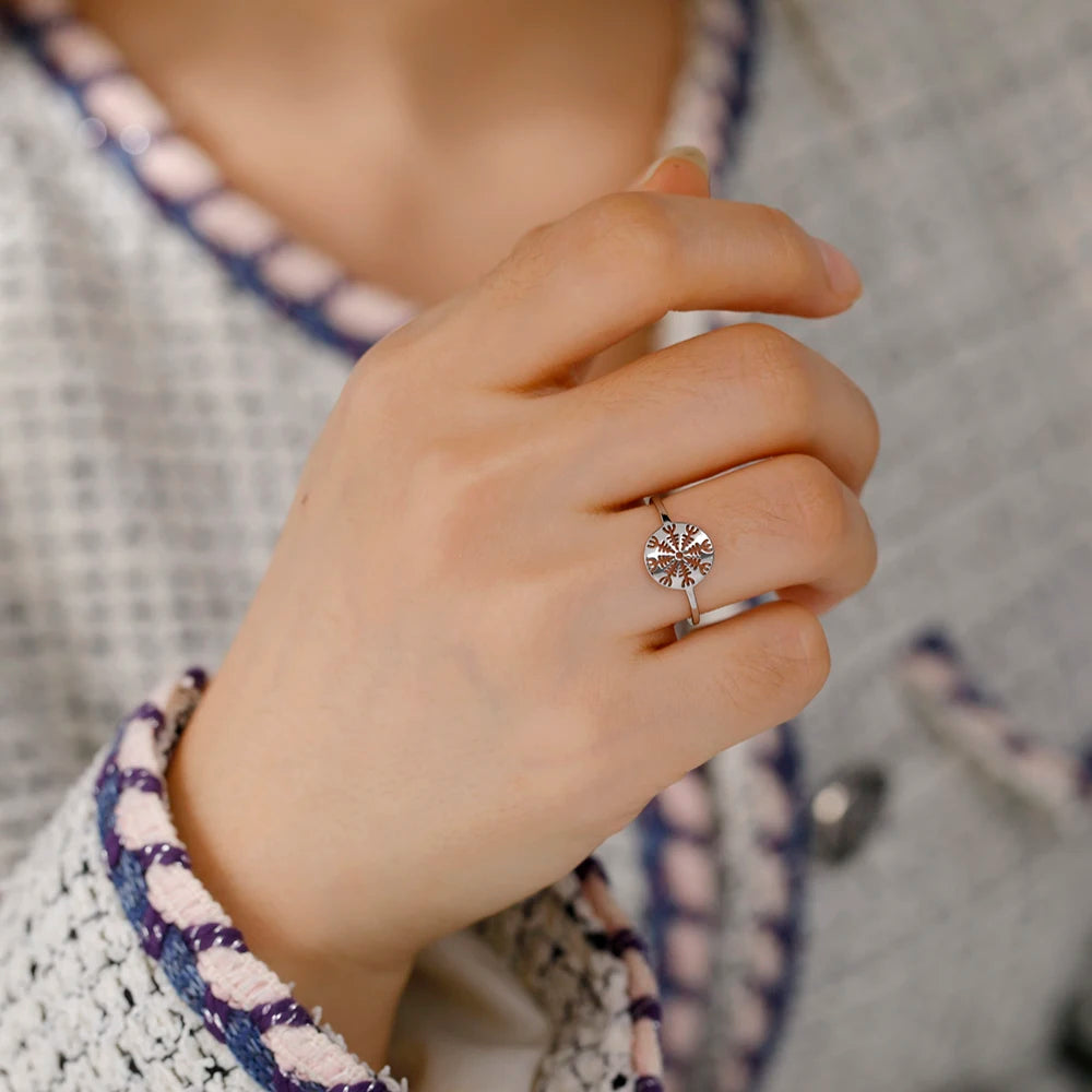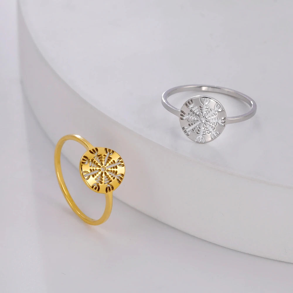 Dawapara Aegishjalmur The Helm of Awe Symbol Ring Viking Vegvisir Norse Compass Stainless Steel Cut Out Scandinavian Jewelry