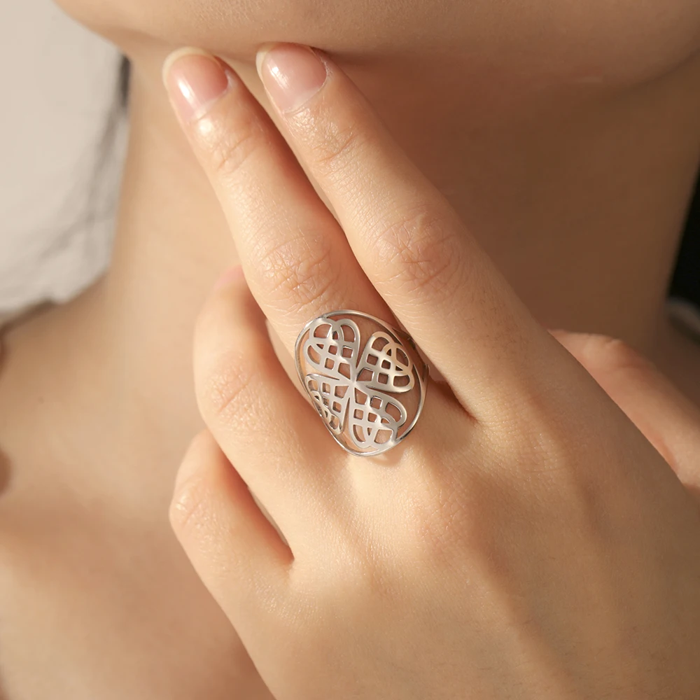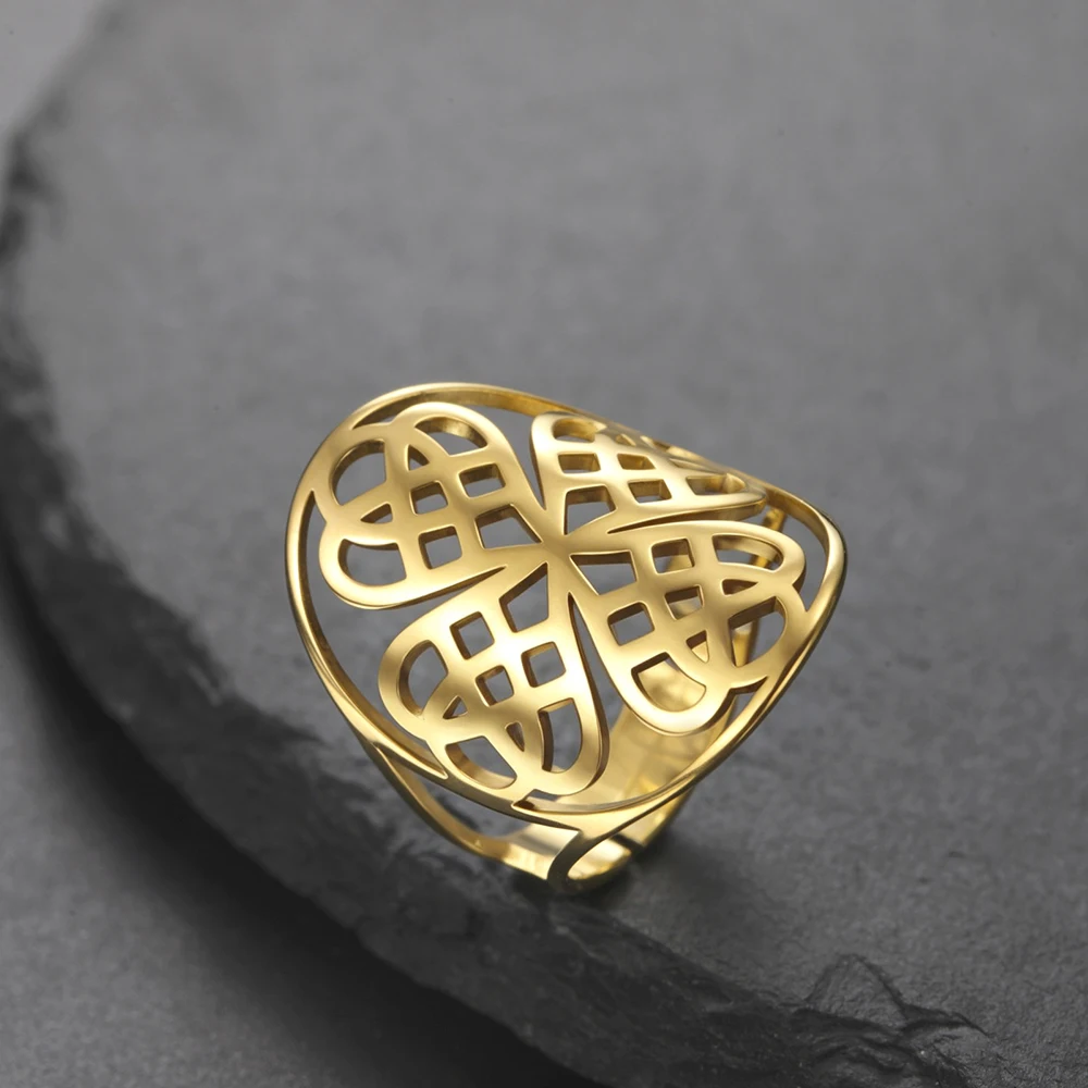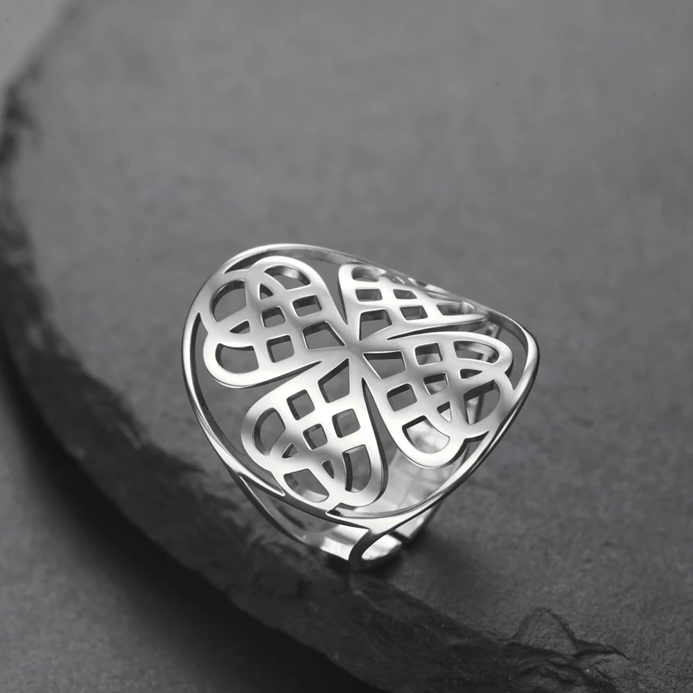 Dawapara Celtics Knot Four Leaf Clover Adjustable Ring Endless Knot Irish Jewelry Nordic Mythology Gift Stainless Steel