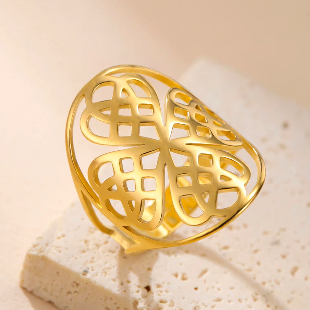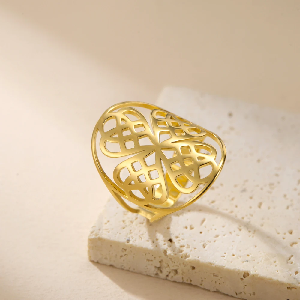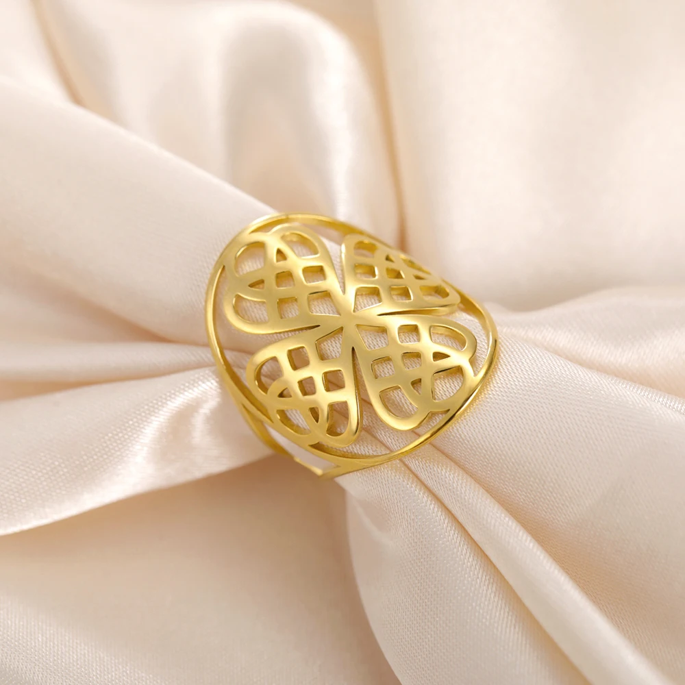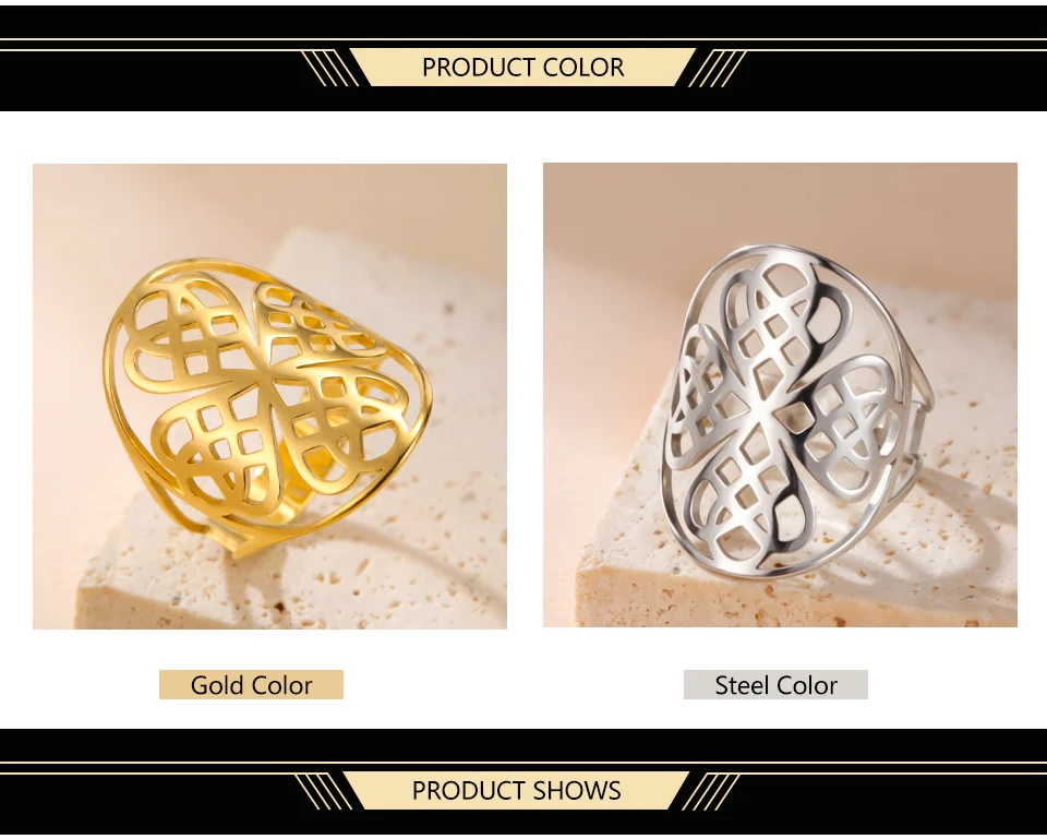 Dawapara Celtics Knot Four Leaf Clover Adjustable Ring Endless Knot Irish Jewelry Nordic Mythology Gift Stainless Steel