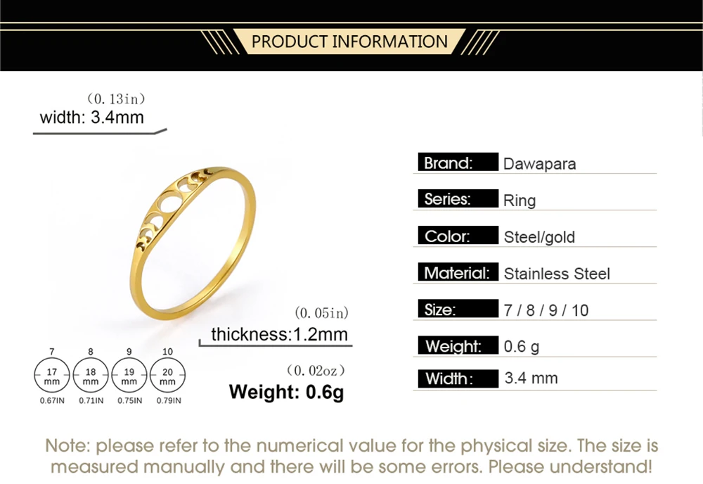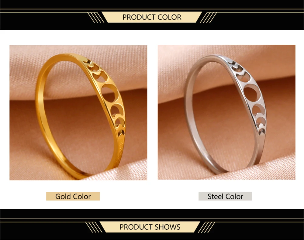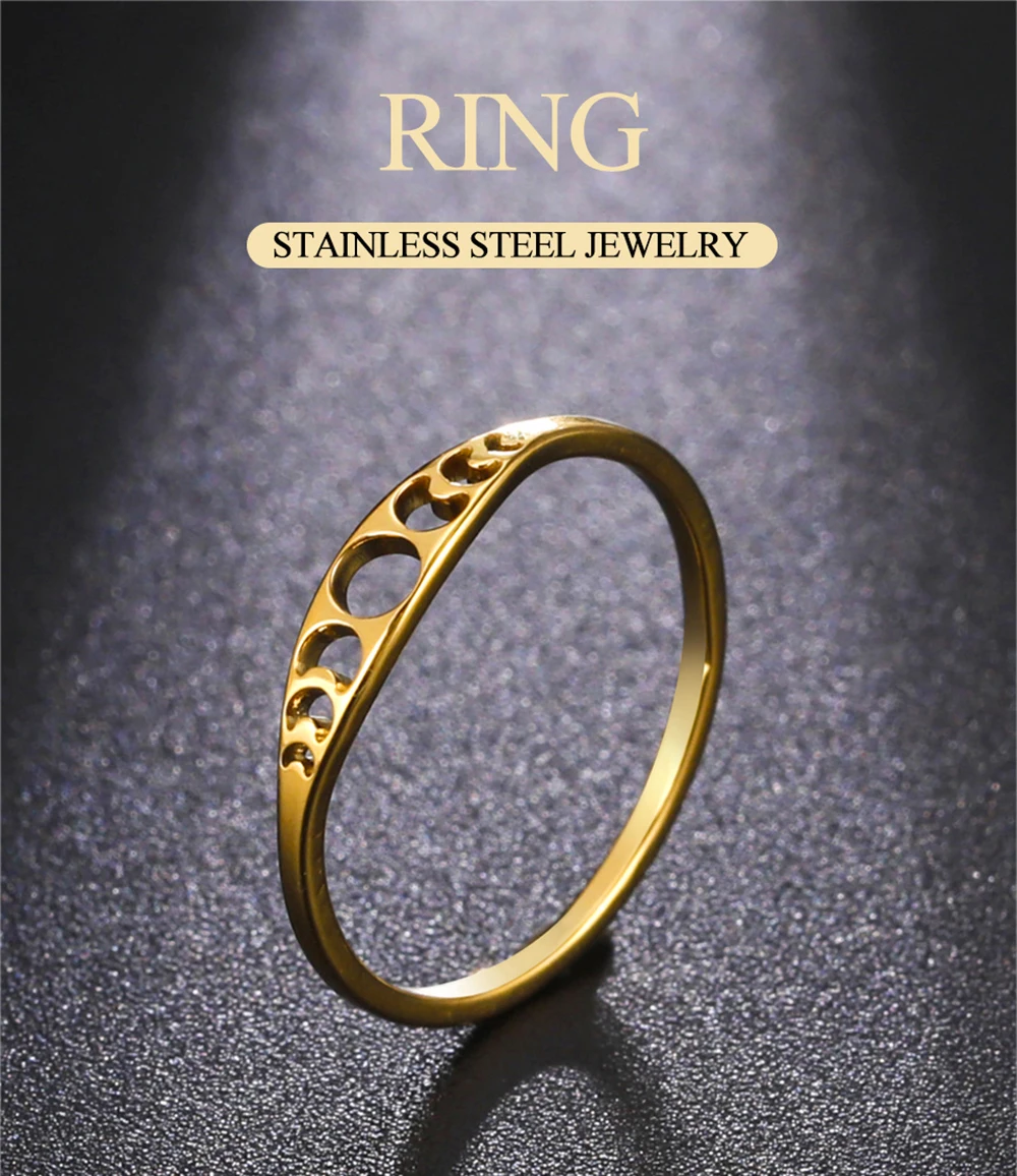 Dawapara Moon Phase Women Ring Lunar Goddess Crescent Moon Minimalist Jewelry Stainless Steel Wedding Band