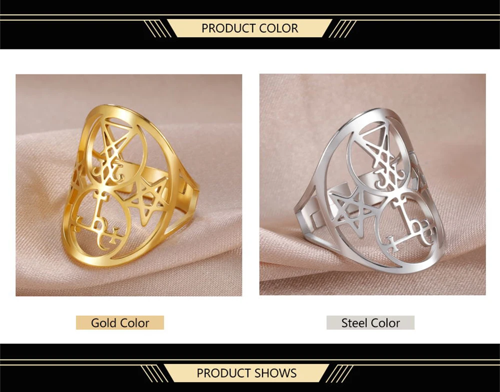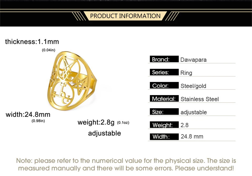 Dawapara Seal of Lilith Lucifer Sigil Adjustable Women Ring Stainless Steel Wedding Bands Moon Goddess Protection Amulet Jewelry