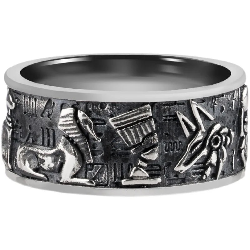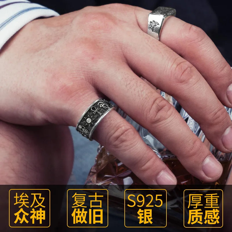 Egyptian Gods Horus Anubis Ring Silver Plated Vintage Pharaoh Totem Open Ring Charm Men Fashion Jewelry