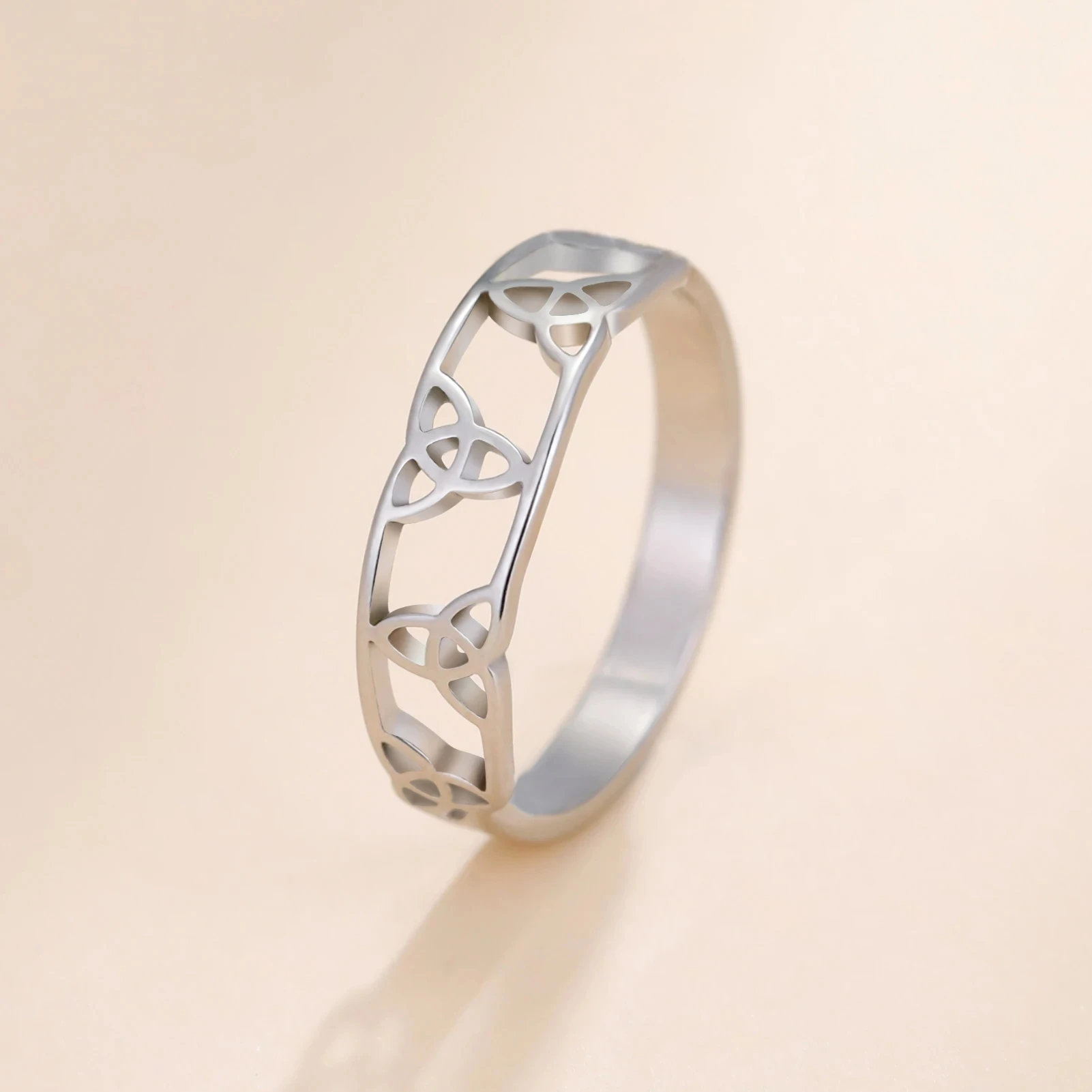 LIKGREAT Stainless Steel Witch Ring Triquetra Celtics Knot Finger Rings for Women Men Irish Talisman Jewelry Amulet Couple Gift