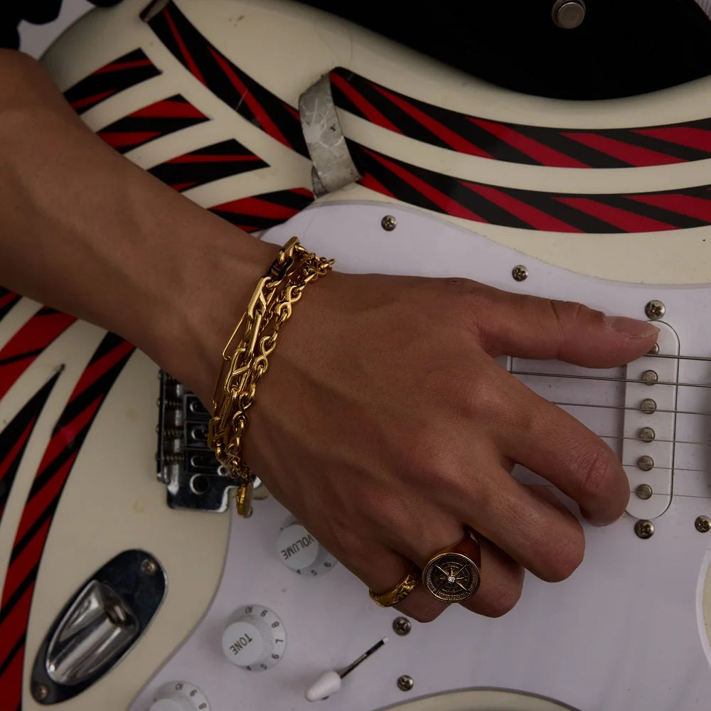 Uworld 18K Gold Color Plated Stainless Steel Reversing Needle Chain Men's Bracelet Stackable Chain Bracelet Neutral Jewelry