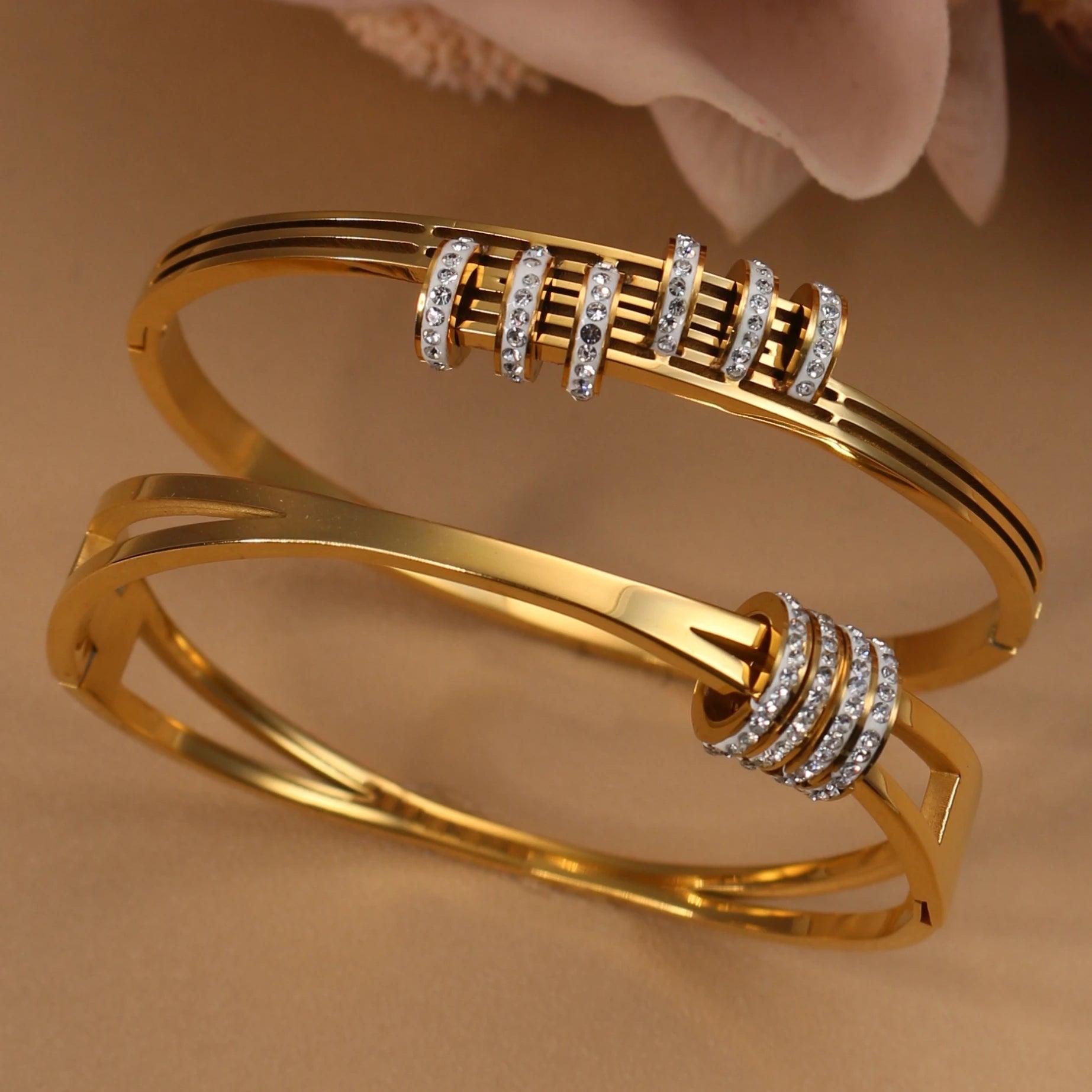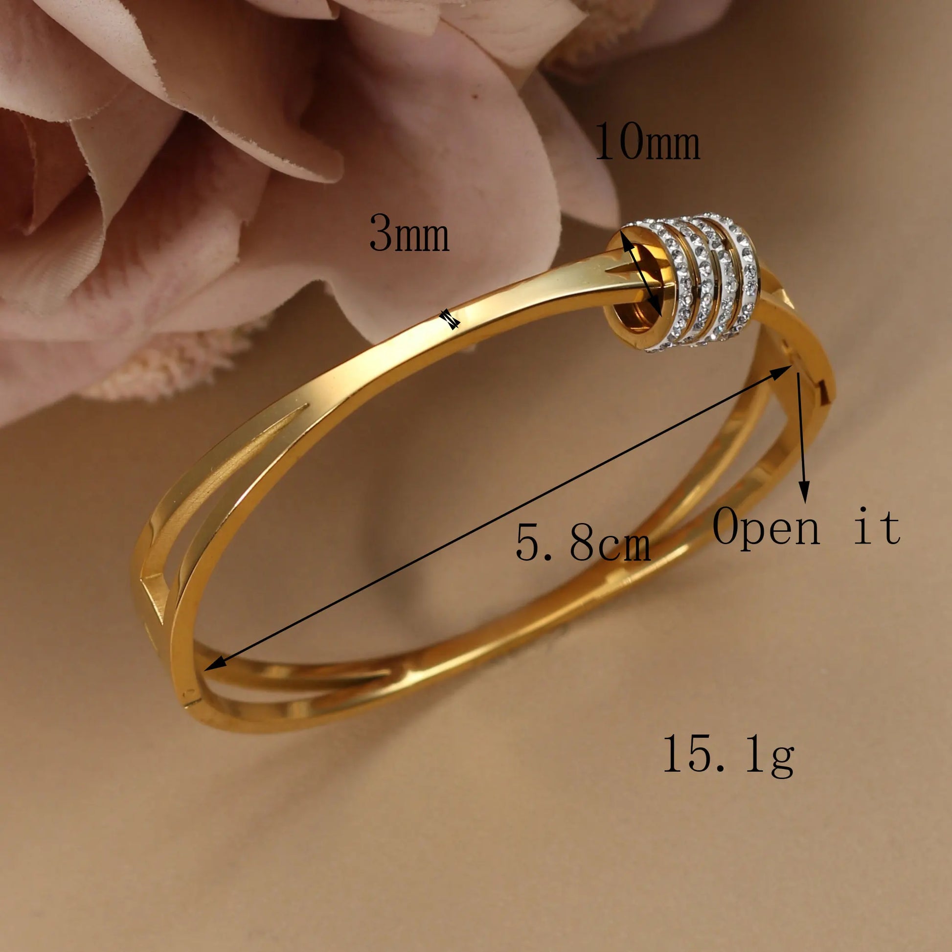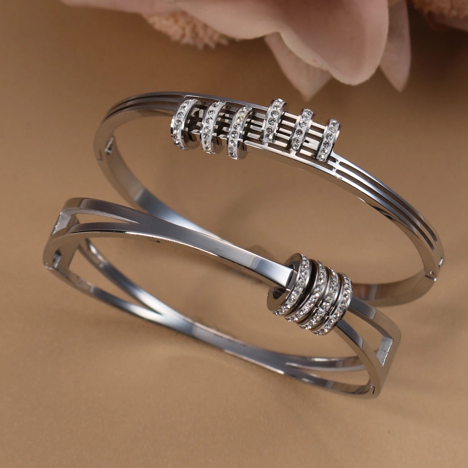 XB-133 New Stainless Steel Jewelry Crystal Bracelets Half Face Hollow Design Bangle For Women's Love Gifts Wholesale