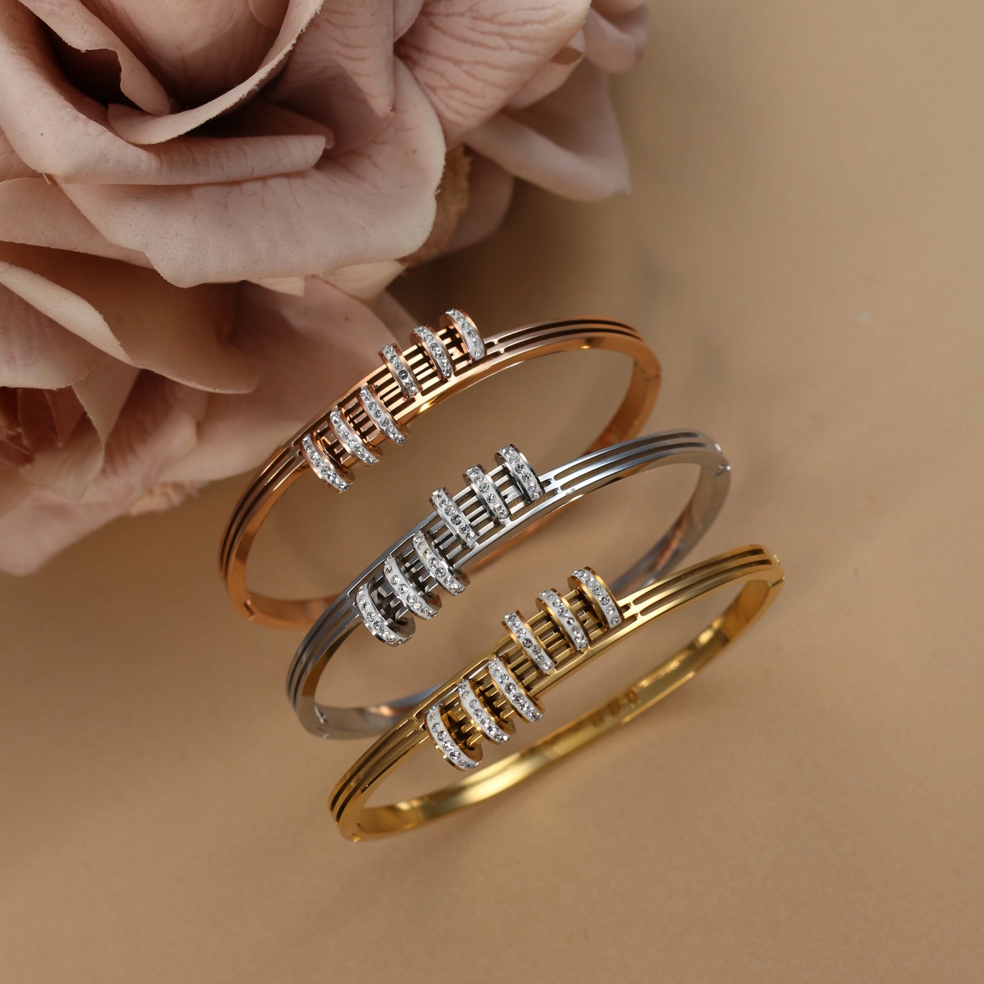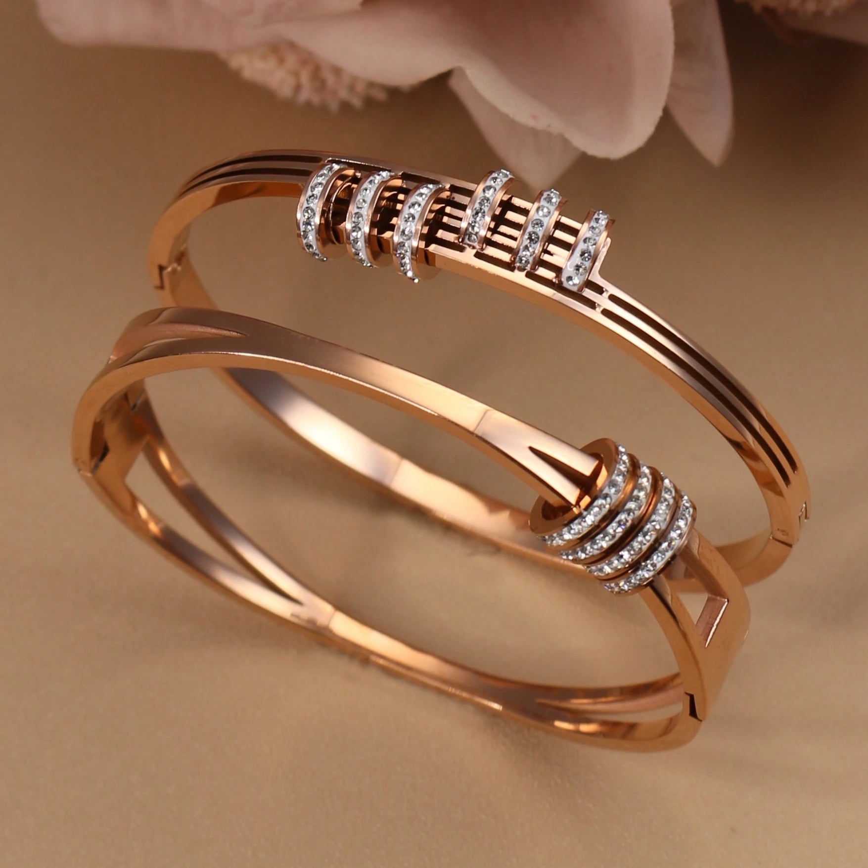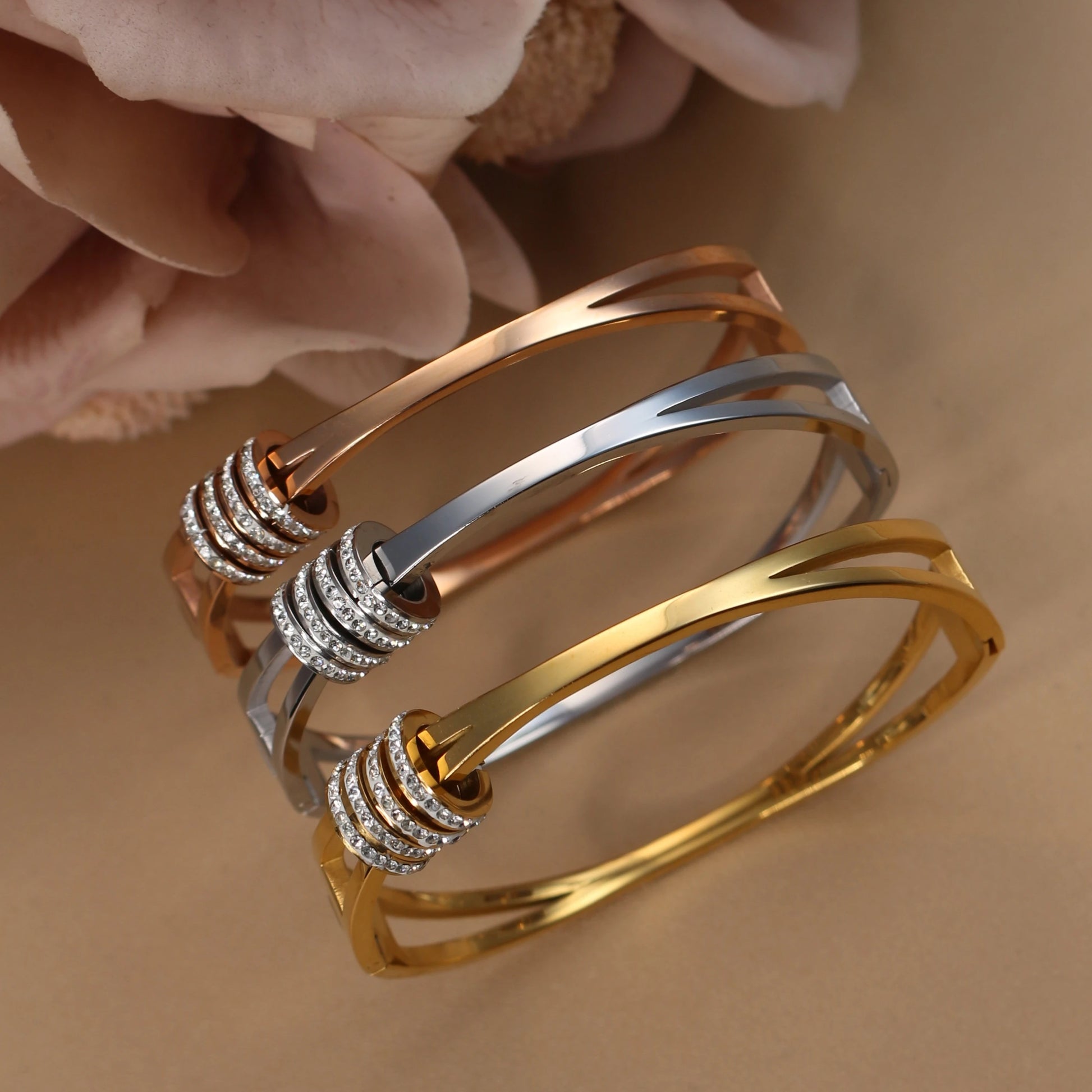 XB-133 New Stainless Steel Jewelry Crystal Bracelets Half Face Hollow Design Bangle For Women's Love Gifts Wholesale